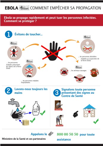 Il s'agit d'éviter de toucher n'importe quoi, de toujours se laver les mains , signaler toute personne présentant des signes suspects et retenir ce numéro: 800 00 50 50.